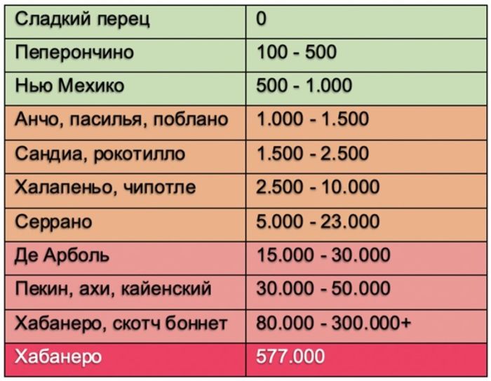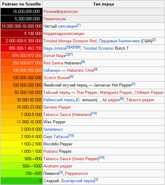 Оригинальная таблица Сковилла.